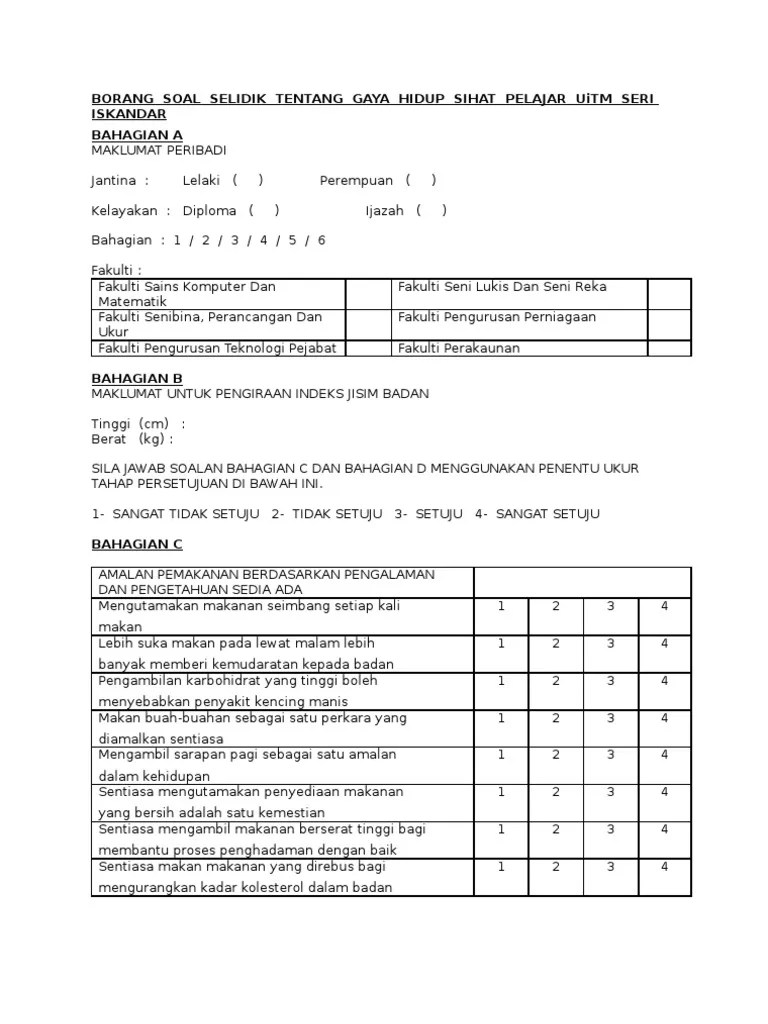Contoh Borang Soal Selidik 2020 Borang soal selidik ini selalunya akan digunakan oleh calon PT3 dalam melaksanakan tugasan serta kerja kursus bagi subjek Geografi PT3. Seramai 108 orang guru yang terlibat sebagai responden di dalam kajian ini. Jaya place subang the.